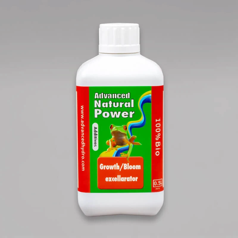 Das Kernstück der Natural Power Zusatzserie von Advanced Hydroponics ist der Growth/Bloom Excellarator. Dieser organische Booster unterstützt den Stoffwechsel deiner Pflanzen. Der Boost wird in Kombination mit der Dutch Formula, bestehend aus Advanced Hydroponics Grow, Advanced Hydroponics Bloom und Advanced Hydroponics Micro, verwendet. Der Booster wird während des gesamten Pflanzenzyklus verwendet und erst 2 Wochen vor der Ernte abgesetzt.
