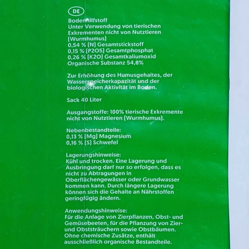 Biobizz Worm Humus ist ein 100% organischer Wurmhumus Substrat. Wurmhumus oder auch Wurmkompost ist das Endprodukt der Aktivität von Regenwürmern. Biobizz Worm Humus besteht aus reinem, organischem Wurmkot. Um sicherzustellen, dass keine Abfälle von Landwirtschaft, Deponiemüll oder Kompost enthalten ist, wird Biobizz Worm Humus streng im Labor getestet. Durch die wasserlöslichen Nährstoffe sorgt Biobizz Worm Mix für eine organische Düngung.