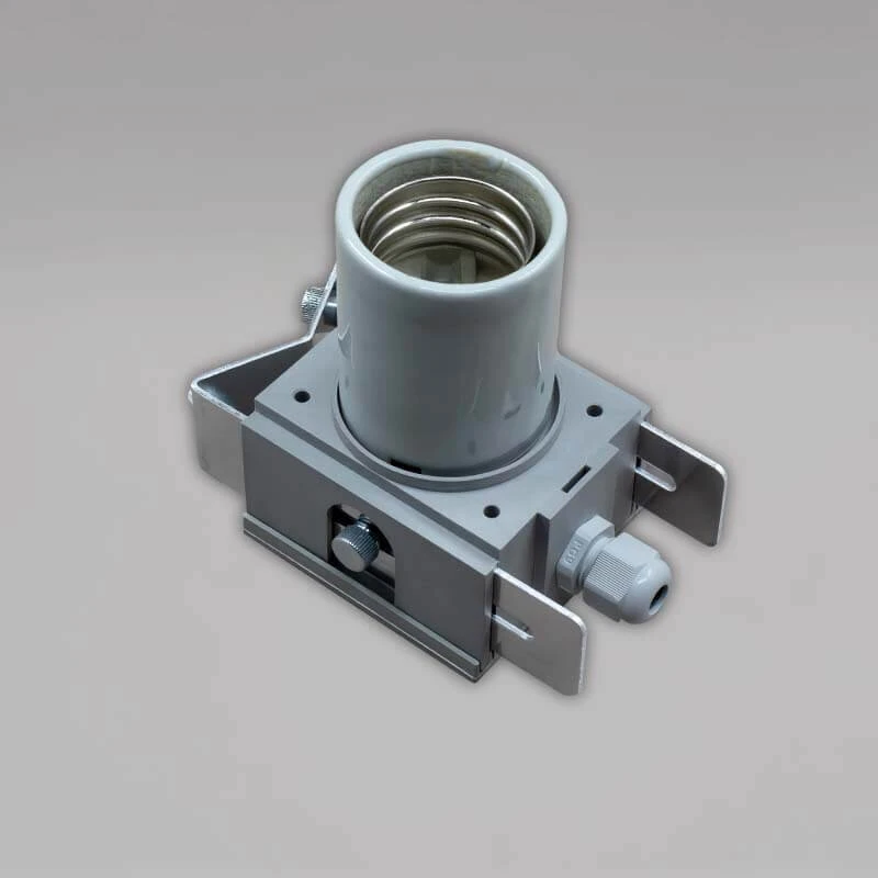 Die einzelne Fassung für alle Adjust-a-Wings Reflektoren besteht aus feuersicherem und hitzebeständigem Polycarbonat Kunststoff und ist daher ideal für die Verwendung mit Natriumdampflampen geeignet. Durch die spezielle Befestigung kann die Fassung an beiden Enden eines Adjust-a-Wings Reflektors befestigt werden.