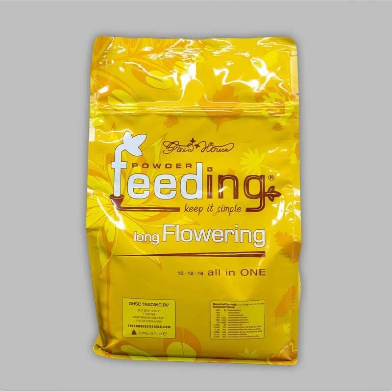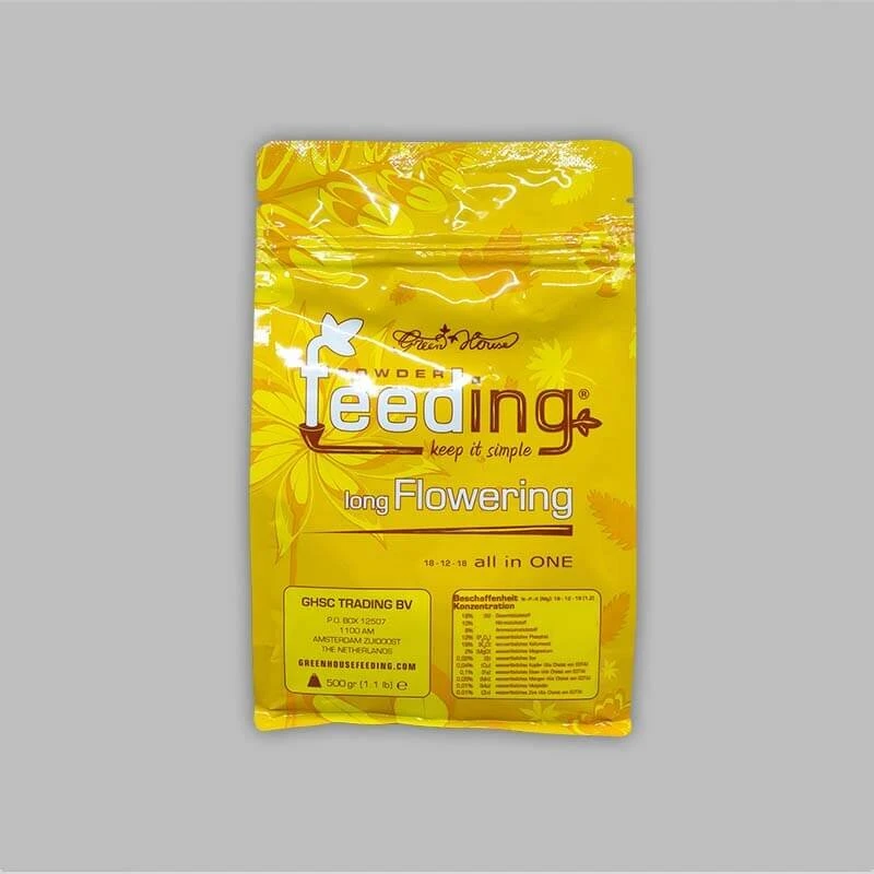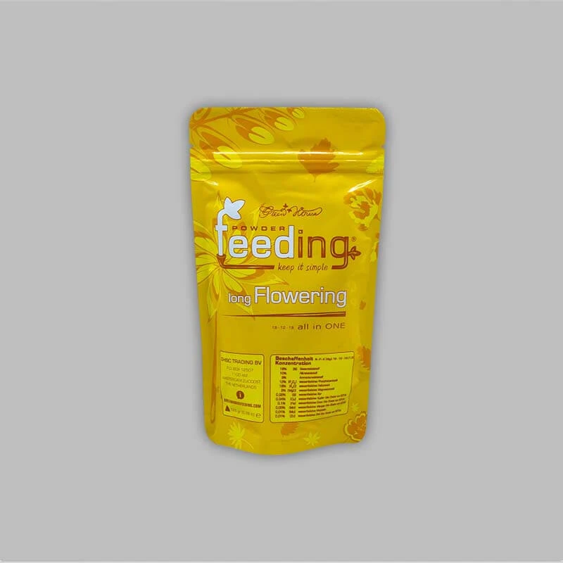 Green House Powder Feeding Long Flowering ist ein Dünger in Pulverform, der speziell für Pflanzen mit langer Blütezeit von 10 und mehr Wochen entwickelt wurde. Durch die sorgfältig angepasste Nährstoffzusammensetzung mit besonders hohem Phosphorgehalt werden die Nährstoffbedürfnisse deiner Pflanzen optimal gedeckt.