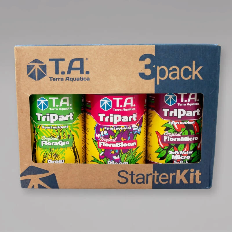 Das T.A. Terra Aquatica Tripack TriPart für weiches Wasser ist ein Starterset, das eine Grundversorgung deiner Pflanzen für einen Durchgang garantiert. Enthalten sind: