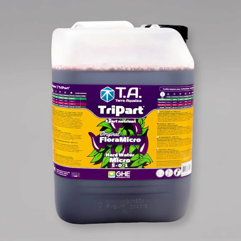 TriPart Micro ist die Grundlage der TriPart Series von T.A. und ermöglicht TriPart Grow und TriPart Bloom ihre optimale Wirkung zu entfalten. Neben Spuren- und Mikroelementen enthält T.A. Terra Aquatica TriPart Micro auch Stabilisatoren, die den pH Wert deiner Nährstofflösung stabil halten.
